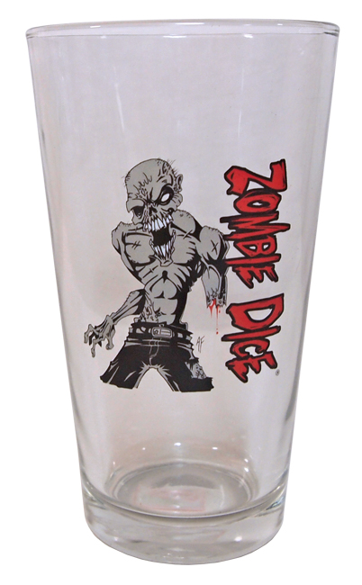 Well, okay, you can if you have a blender big enough and the time to prepare, but now we're just splitting hairs. But what you can do with this lovely Zombie Dice Pint Glass, without even needing a blender, is enjoy your favorite beverage while supporting the pro-zombie agenda.