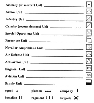 A group of military symbols has been standardized by the NATO countries to make TOs easier to make out than boxes full of initials and to show the command level of the units involved. Some of these symbols are: