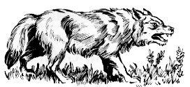 The dire wolf is the sturdy but slow precursor of the modern wolf. Dire wolves are active both day and night, traveling in packs ranging from four to forty animals. Scavengers by nature, dire wolves prey upon animals in distress – the injured, the old, the abandoned young. They often attack animals trapped in mires, rock slides and tar pits. The La Brea tar pits contain more skeletons of dire wolves than of any other mammal.