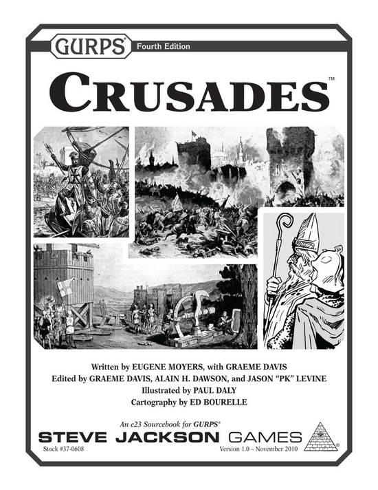 You can find an index of all the GURPS bibliographies we have online here. If you spot any broken links or other problems with this page, please report them to webmaster@sjgames.com. Bibliography for GURPS CrusadesThese sources were used in the writing of GURPS Crusades. BooksBaigent, Michael; Leigh, Richard; and Lincoln, Henry. Holy Blood, Holy Grail (Delacorte Press, 1982). A theory that the Templars survive into the modern day, guarding a secret that could rock the Church to its core. Bartlett, W. B. God Wills It! An Illustrated History of the Crusades (Sutton, 1999). A solid history of the Crusades from the Battle of Manzikert through the fall of Acre in 1291. Excellent detail; well written. Billings, Malcolm. The Crusades: Five Centuries of Holy War (Sterling, 1996). Well-written, with good coverage of later crusading in the Mediterranean and Asia Minor. Bray, R. S. Armies of Pestilence: The Impact of Disease on History (Barnes & Noble Books, 2000). A look at the impact of plagues on the Crusades and other historical events. Brown, Dan. The Da Vinci Code (Doubleday, 2003). This best-selling novel explores the possibilities set forth in Holy Blood, Holy Grail – so closely that its authors sued Brown for plagiarism. The book contains more detail than the movie. Clifton, Chas S. Encyclopedia of Heresies and Heretics (Barnes & Noble Books, 1998). This book includes detailed coverage of the Cathar heresy, which was wiped out in the Albigensian Crusade. Daraul, Arkon. Secret Societies: A History (MJF Books, 1989). Includes chapters on the Assassins and the Templars. Duggan, Alfred. Lord Geoffrey's Fancy (Phoenix Press, 2007). This historical novel traces the experiences of an English knight seeking his fortune in Outremer. Duggan's The Lady for Ransom (Phoenix Press, 2007) is set in Byzantium at the dawn of the Crusades. And his Count Bohemond (Phoenix Press, 2007) is a fictionalized account of the life of Bohemund, the first Latin King of Antioch. Gabrieli, Francesco. Arab Historians of the Crusades (Barnes & Noble Books, 1993). A look at the Crusades from the Muslim point of view. Heckethorn, Charles W. The Secret Societies of All Ages and Countries (Cosimo Classics, 2005). Two volumes (the second is here). A reprint of an 1875 book with information on the Assassins and the Templars. Howard, Robert E. Lord of Samarcand and Other Adventure Tales of the Old Orient (Bison Books, 2005). The creator of Conan wrote many historical action tales, some set in Outremer; this is a collection of the best. Lane-Poole, Stanley. Saladin and the Fall of Jerusalem (Greenhill Books, 2002). Good biography and chronicle of Saladin's campaigns in the Holy Lands and Egypt. Good charts on the rulers of the various Crusader kingdoms. Lewis, Bernard. The Assassins: A Radical Sect of Islam (Basic Books, 1968). A good history of the Ismaili and Assassin sects, with useful information on Muslim religious divisions. Logan, Donald F. A History of the Church in the Middle Ages (Routledge, 2002). This detailed history of the medieval papacy provides background information on papal motivations and politics of the Crusades as well as many useful maps. Miller, David. Brassey's Book of the Crusades (Brassey's, 2001). A good general reference with chapters on weapons, siege warfare, and the military orders. Nicholson, Helen. The Knights Hospitaller (Boydell, 2001). A detailed history of the Knights Hospitaller, including their background, finances, and organization. The second half of the book deals with the Hospitallers' history after the Crusades. Nicolle, David. The Crusades (Osprey, 2001). Part of the Essential Histories series, this book offers a light overview of the Crusades but is useful for its excellent photos and color maps, along with several significant short biographies. Nicolle, David. The Crusades (Osprey, 1988). Part of the Elite series. This book presents hard information on warfare, sieges, and weapons, with the usual excellent color illustrations of soldiers and their equipment. Nicolle, David. Knight of Outremer (Osprey, 1996). Part of the Warrior series. A detailed treatment of Crusader arms, armor, equipment, and tactics, with good sections on pay, training, society, and heraldry. The illustrations are excellent, as expected of an Osprey publication. Nicolle, David. Saladin and the Saracens (Osprey, 1986). A detailed illustrated reference on Muslim arms, armor, and tactics. Read, Piers-Paul. The Templars (St. Martin's Press, 1999). An authoritative history of the Templars up to their dissolution in 1314. Riley-Smith, Jonathan. The Crusades (Yale University, 1987). A detailed history of the crusading movement up through the Renaissance and Reformation, with excellent background material on the participants, crusading theory, trends, and politics. Wasserman, James. The Templars and the Assassins (Inner Traditions International, 2001). The first part of the book gives historical information on Templar and Assassin activity in the Holy Lands, and the latter part is given over to conspiracy theories. Williams, Paul L. The Complete Idiot's Guide to the Crusades (Alpha Books, Pearson Education Inc., 2002). An easy-to-read volume on the history and background of the Crusades. Part of the well known Idiot's Guide series, its main drawbacks are its casual writing style and a shortage of dates in the historical section. FilmsThere are surprisingly few films based on the Crusades. Perhaps Hollywood should take note. The Crusades (Cecil B. DeMille, 1935). Directed by Cecil B. DeMille, with medieval historian Harold Lamb as technical adviser and a literal "cast of thousands," this could have been a great movie but falls short. It suffers from very muddled history and carries a heavy-handed "peace" message, probably due to the isolationist sentiment of the 1930s in America. Saladin (Youssef Chahine, 1961). Distributed by Lotus Films, an Egyptian company, this movie is a mix of confused history and rather heavy-ha