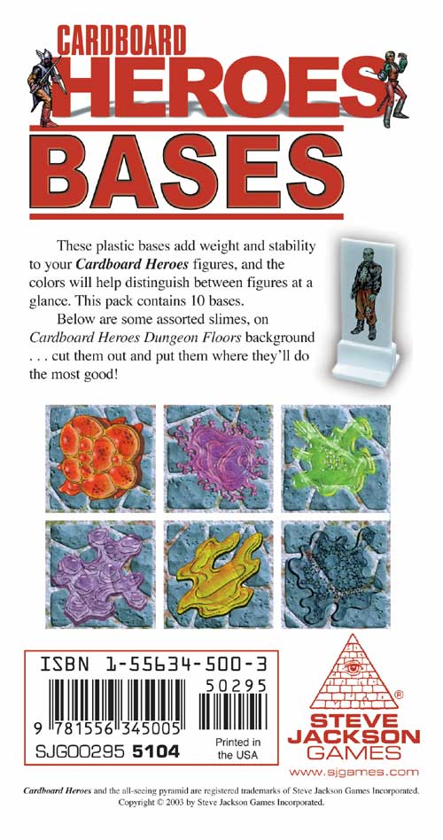 Cardboard Heroes miniatures are beautiful, much cheaper than metal figures, and more convenient too! These plastic bases add weight and stability, and the colors will help distinguish between figures at a glance.