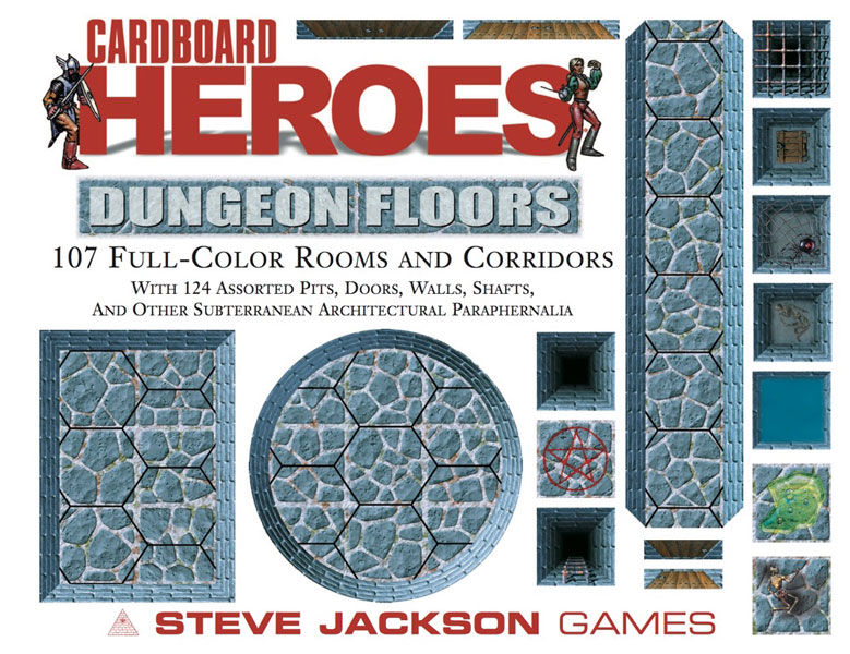 Out Of Print – Click here for dealer infoCardboard Heroes Dungeon Floors has 107 full-color rooms, stairways, and corridors, from 1" square closets to 6" x 6" rooms and long hallways. Print them out, cut them out, put them down, and rearrange them to form an infinite variety of dungeons for your adventurers. Also included are 124 assorted pits, chests, shafts, walls, and other subterranean architectural trappings. Cardboard Heroes Dungeon Floors will help to answer every player's question, "Where are we now?"