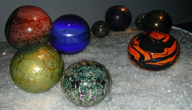 ![]() September 3, 2003: This Time It WorkedSo on Sunday, we took a second try at our Visit Art Museum roll. This time we made it to the San Antonio Museum of Art and its Dale Chihuly exhibition. I put off this report in order to add Mia Sherman's photos - thanks, Mia!Anyway. Whoooooo. I am still getting mental images of a few of the installations, especially the "Macchia Forest" (more than a dozen huge glass bowls, irregularly shaped and brilliantly colored, each with a spotlight shining inside it so the whole bowl seemed to glow) and the "Niijima Floats" (variously colored or iridescent spheres, inspired by the glass net-floats the Japanese use). But there's no way I could tell you what I liked most. There was just too much wonderful stuff there. The rest of the museum was worth the visit, too. Several parts of the permanent exhibit were very impressive. The exception was the modern art collection. Now, there is such a thing as good modern art. But this museum doesn't have any. Their art collection isn't modern, and their modern collection isn't art. A lot of it, in fact, elicits the "Whoever made this thing KNEW he was kidding, but the buyer didn't" giggle.