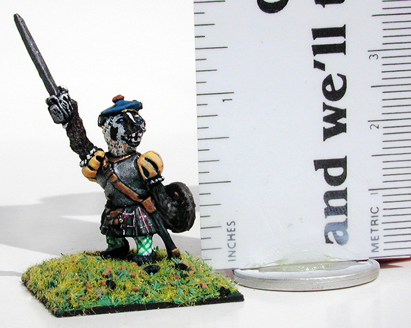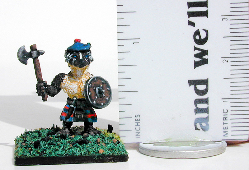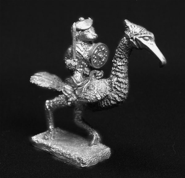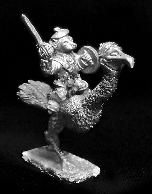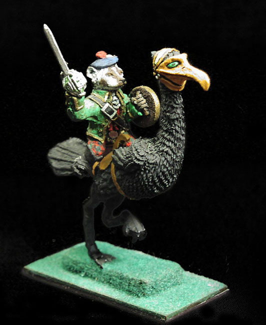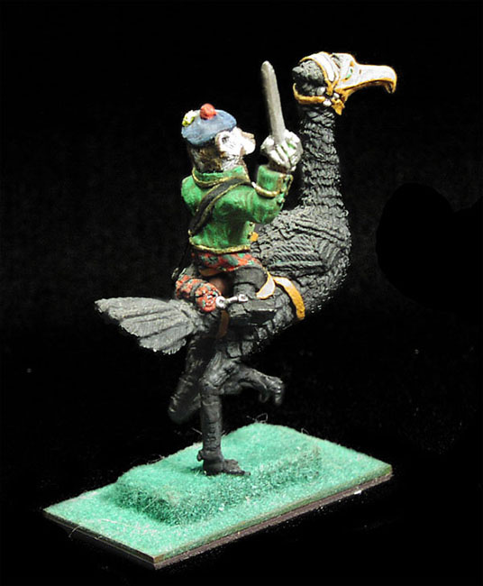 In addition to infantry, some Highlander clans maintain a small bird-mounted cavalry unit, used primarily for patrolling their borders. This is an individual Highlander Badger Light Cavalry Officer, including mount.