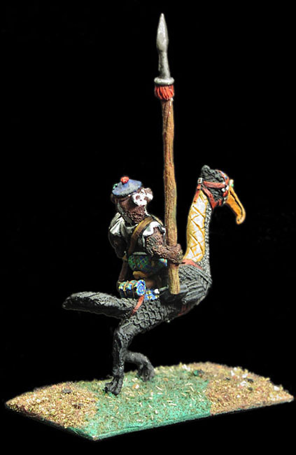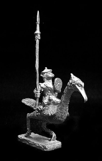 In addition to infantry, some Highlander clans maintain a small bird-mounted cavalry unit, used primarily for patrolling their borders. This is an individual Highlander Badger Light Cavalry Trooper, including mount.