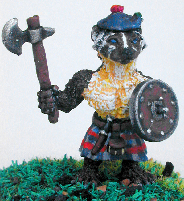 In 2067, a group of wealthy Texas landowners, doctors, and lawyers combined their resources to create an Arp race that would work as groundskeepers and security personnel on their estates. Since all of them claimed some degree of Scottish ancestry and were fanatic enthusiasts of Highland tradition, they decided to build a culture for their Arps based on that tradition. The North American badger (Taxidea taxus) fit the personality traits they wanted for the job, and so it was chosen as the genetic base.