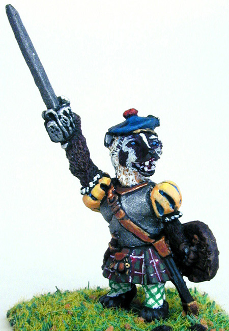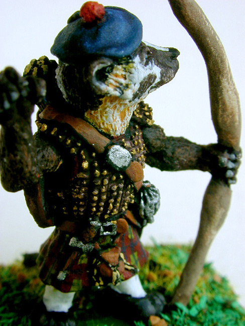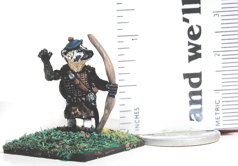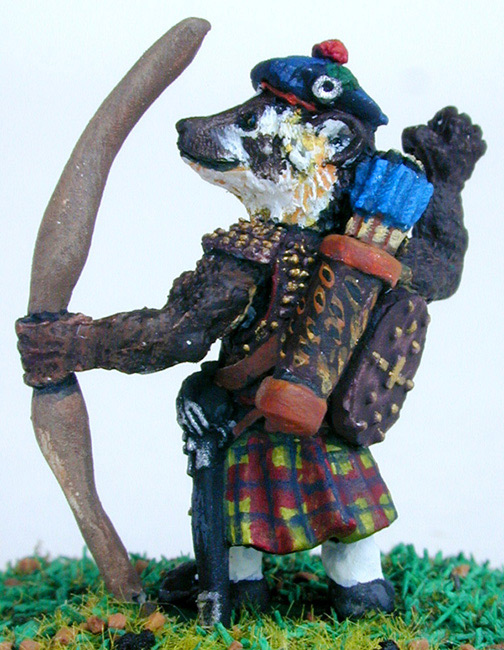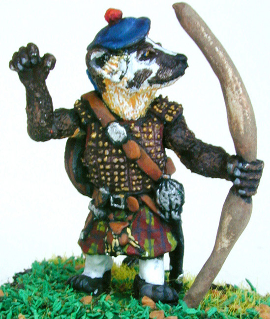 Not all Badgers launch themselves into melee. Some prefer a stout longbow and a quiver of arrows. Clad in a studded leather shirt, they also carry a sword and shield for melee.
