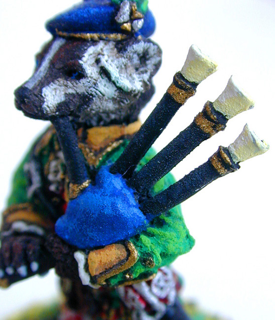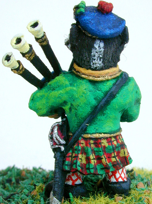 Every clan needs a bagpiper. Whether his aim is to rally the troops or frighten the opposition is a question of great debate. Some Highlander bards used bagpipes, also.