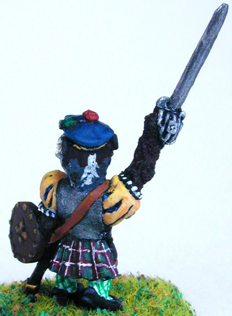 The main strength of a Highlander army is in its Footmen, well trained and equipped troops wearing a light metal cuirass or chain mail shirt. Most of these fought with the basket-hilted broad sword and 'targe' or shield.