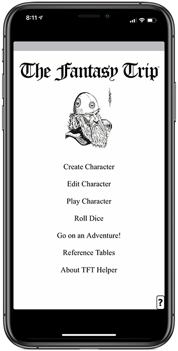 TFT Helper is an app for iOS and Android phones. It lets you create and modify a Fantasy Trip character, save a library of characters, and run a hero through a solo adventure . . . and gain experience points!